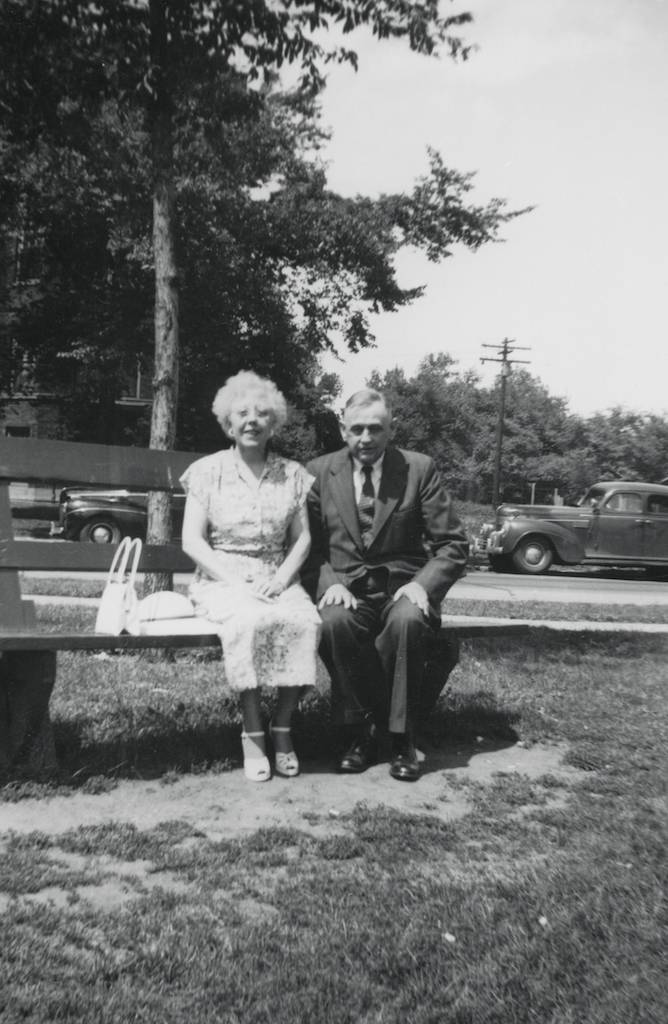 TOP LEFT: Marie T. (Trier) Ruth and Adolph (Aud) Heinrich Ruth sit happily on a park bench together. The photo was dated on the back, June 4, 1949. Marie’s birthday was sometime in June so perhaps this was her birthday celebration.