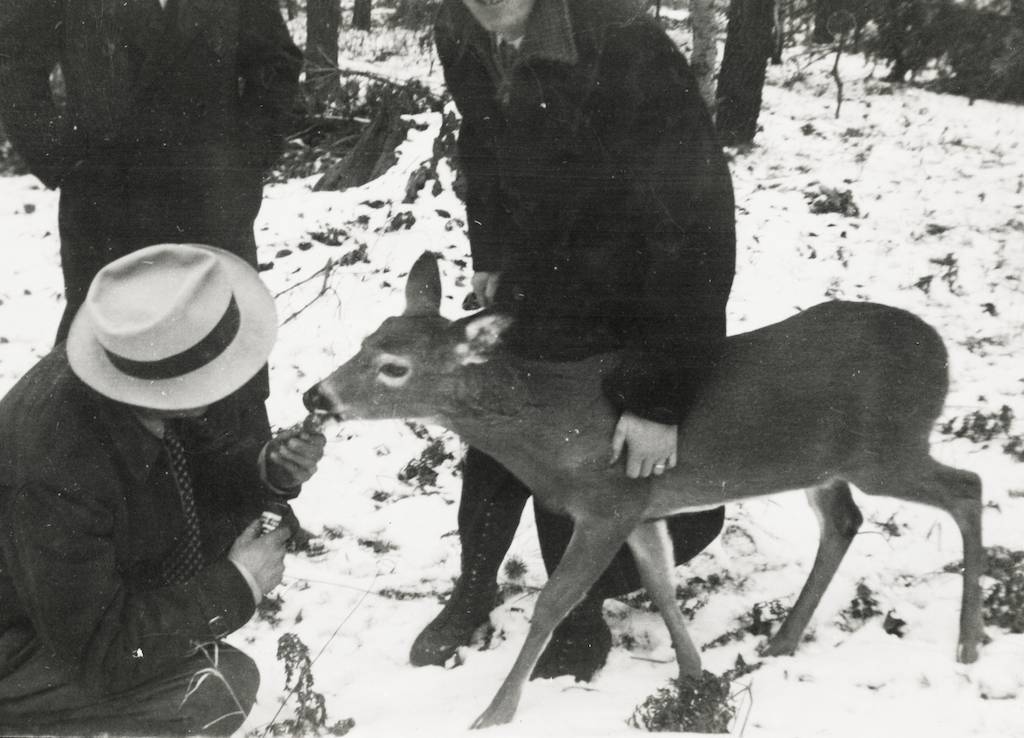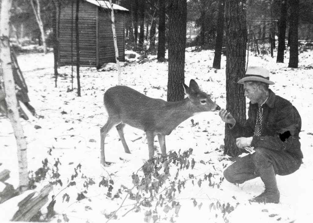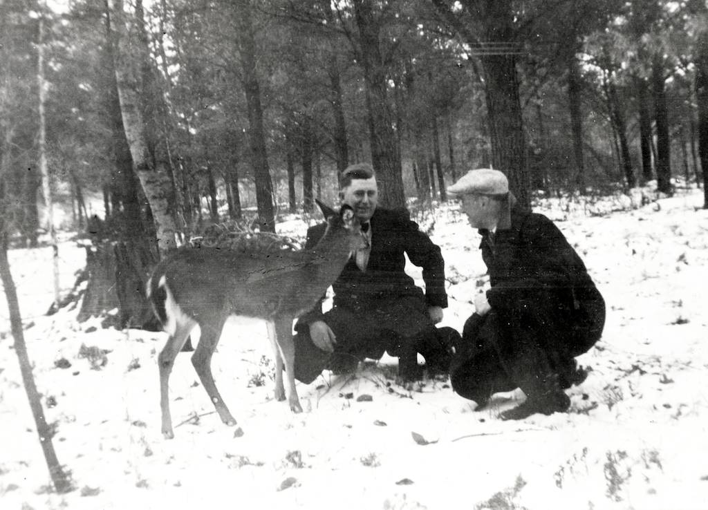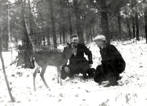 MIDDLE PHOTO: That was one of the rental cabins at Paulding. Once Esther was sitting on the couch in the cabin, chatting with the men when suddenly a little mouse came scampering along the back of the couch right behind her. Everybody but Esther saw it but they were all very quiet about it. They probably didn’t want to scare the poor mouse--not to mention Esther! She never saw it but after a bit they told her about it. By then it was too late to react, but they all had a good laugh from it. In the photo Carl Jr. and Carl Sr. stand in front with Jippy sitting on a stump.