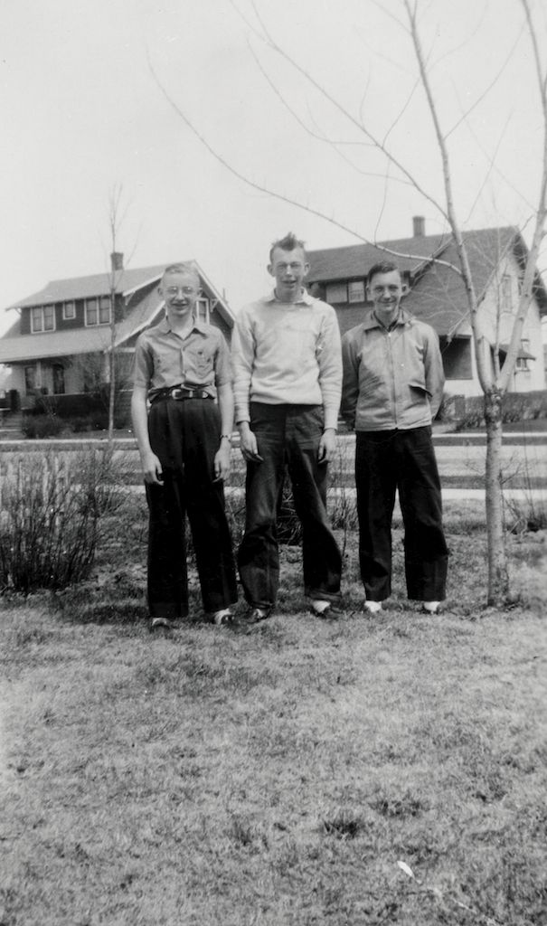 UPPER LEFT: Carl Junior with Jippy and Johnny McElroy. About late grade school.