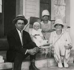 Clara and some of her family are shown above. Harold Brady, Clara’s husband, sits next to his oldest granddaughter, Joyce. Laura, Clara’s daughter-in-law sits partially hidden between Joyce and Clara, as she was pregnant with Sally. Laura’s three little children were very close together, about a year-and-a-half apart.