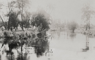 Above are two scenes of the Pigeon River in Clintonville. Esther Ruth and her friends would slowly drive their 5 or 6 cows to their pastures down by the river in the morning so they could graze during the day. Later in the afternoon, they would bring them back again. They had to take their time because if they hurried, the cows would lose their milk. It was always a very leisurely activity for them--Yum! The post cards were from 1909.