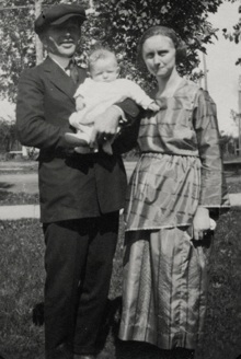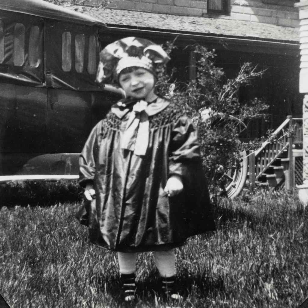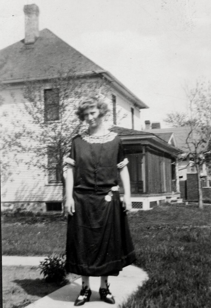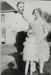 BOTTOM RIGHT: Carl is all dressed up in his double-breasted suit and vest, with Esther in her 1920s satin dress and fashionable cloche hat. Both Esther and Ruth wear strapped shoes, fashions of the mid-twenties. Ruthie is also in her Sunday best. She is wearing a smocked satin coat and a very fancy Tam O’Shanter. Tam O’Shanters were the height of style in girl’s and women’s millinery at that time. She appears to be about three years old, so the photo was taken about 1925.