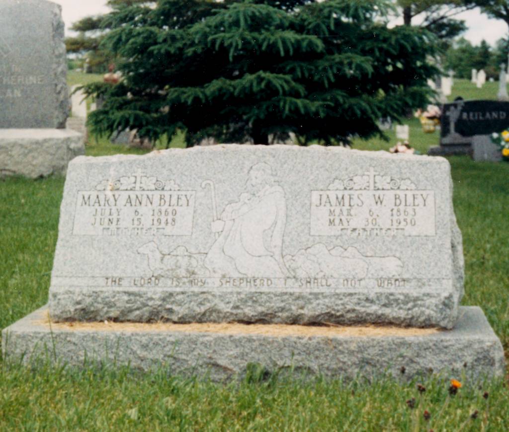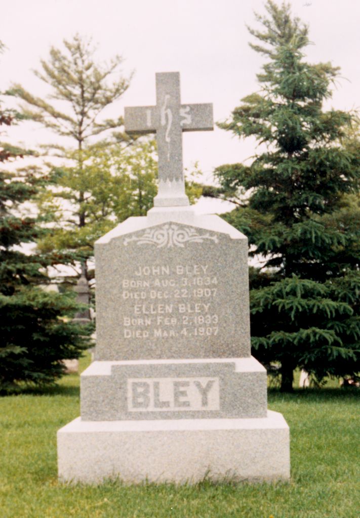 TOP LEFT: The memorial of John and Ellen (Cannon) Bley.