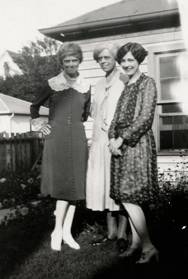 TOP RIGHT: (L. to R.) Lena, Laura and Louise (Stacker) Ehrgott. Alma Ruth stands to the right.