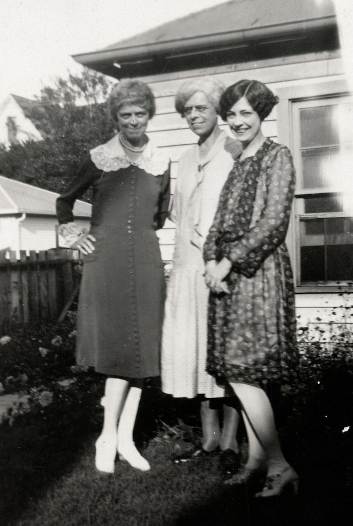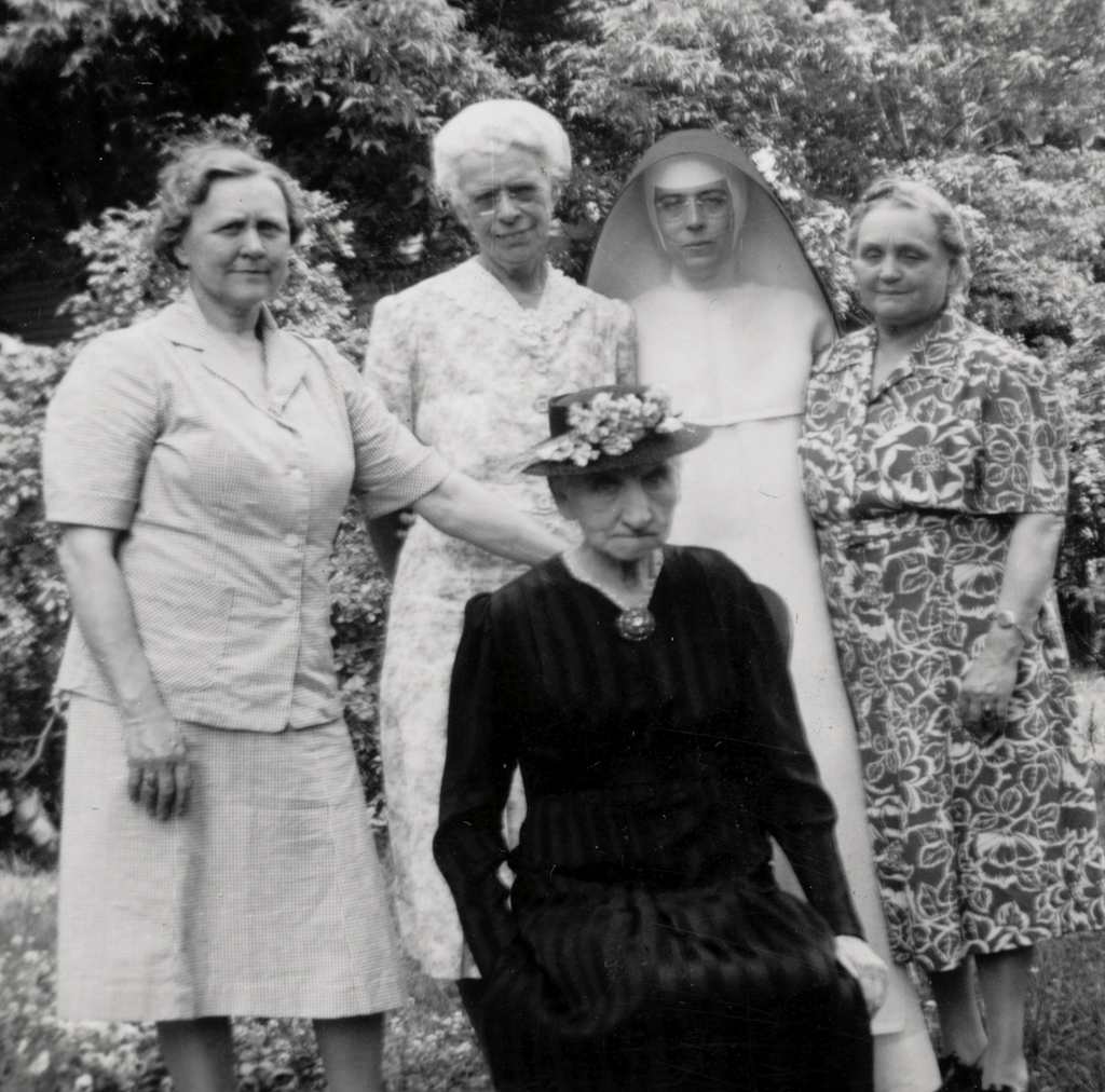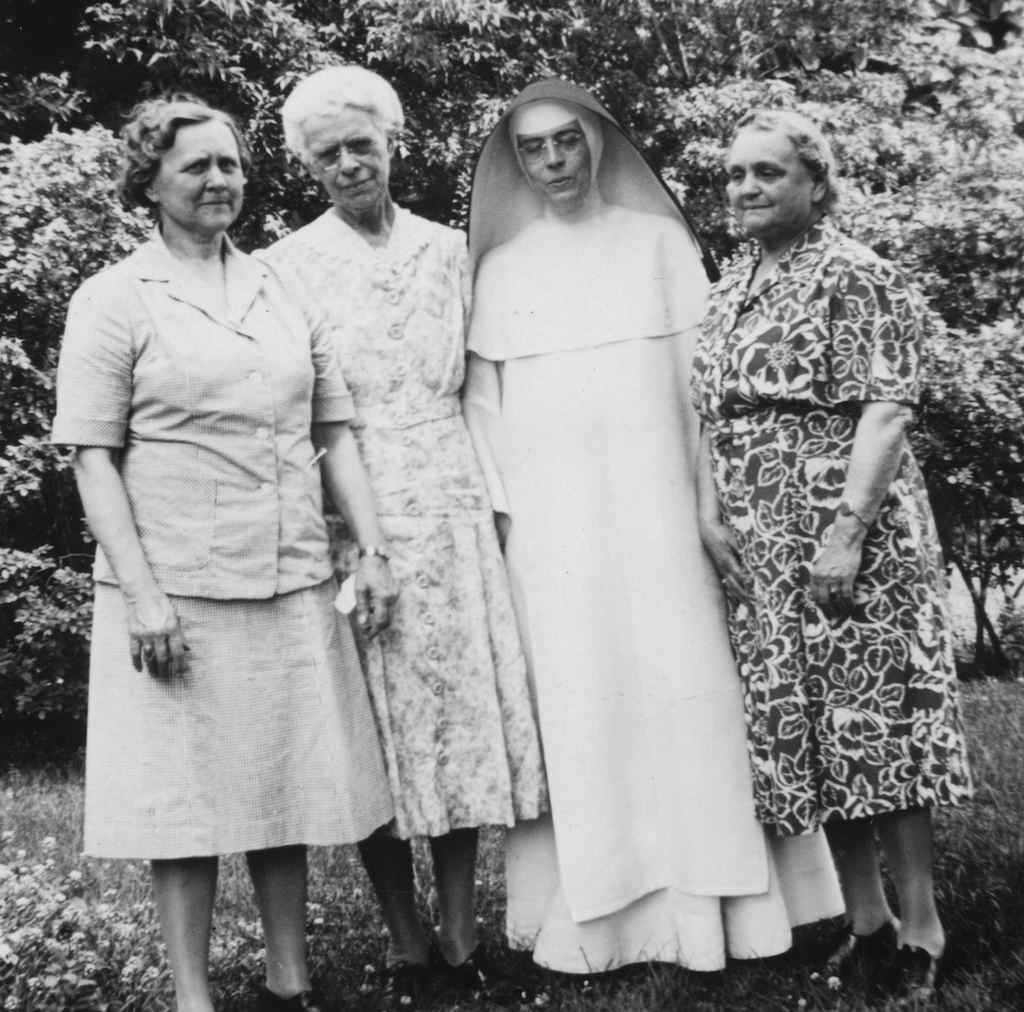 BOTTOM PHOTOS: Alma Ruth, Louise Ehrgott Stacker, Ione Houlehan (or Sister Raphael), and an unidentified cousin with Bertha Ruth, Gustav’s second wife. The cousins stand together in the second photo. Ione was known as Sister Raphael in the Catholic Church.