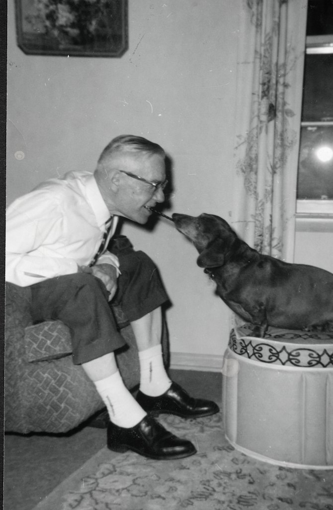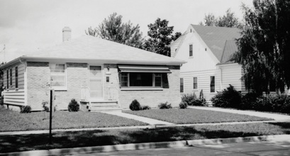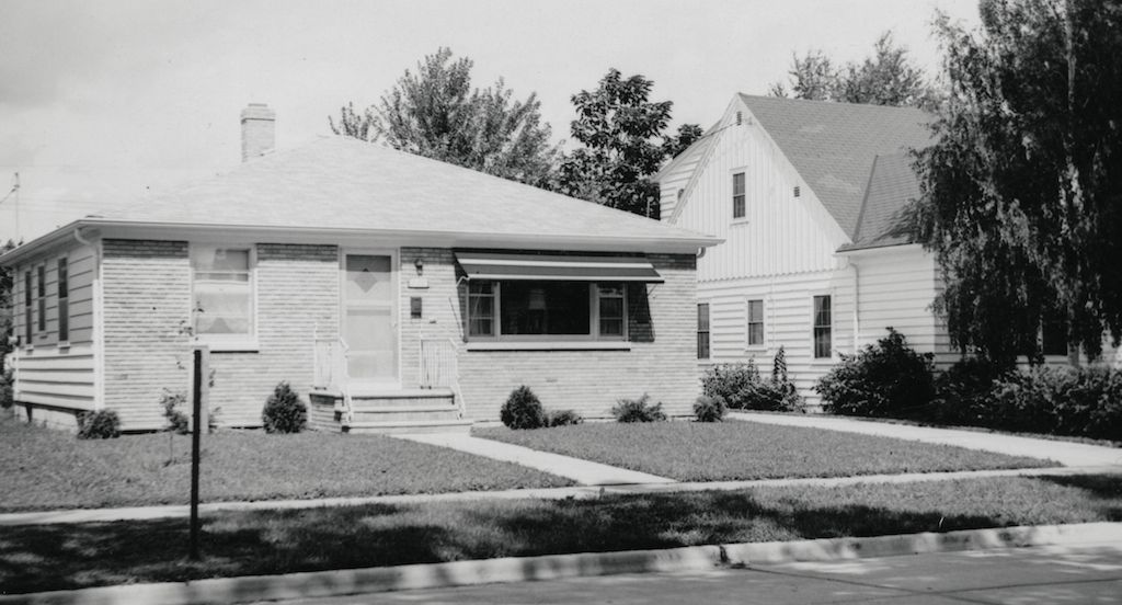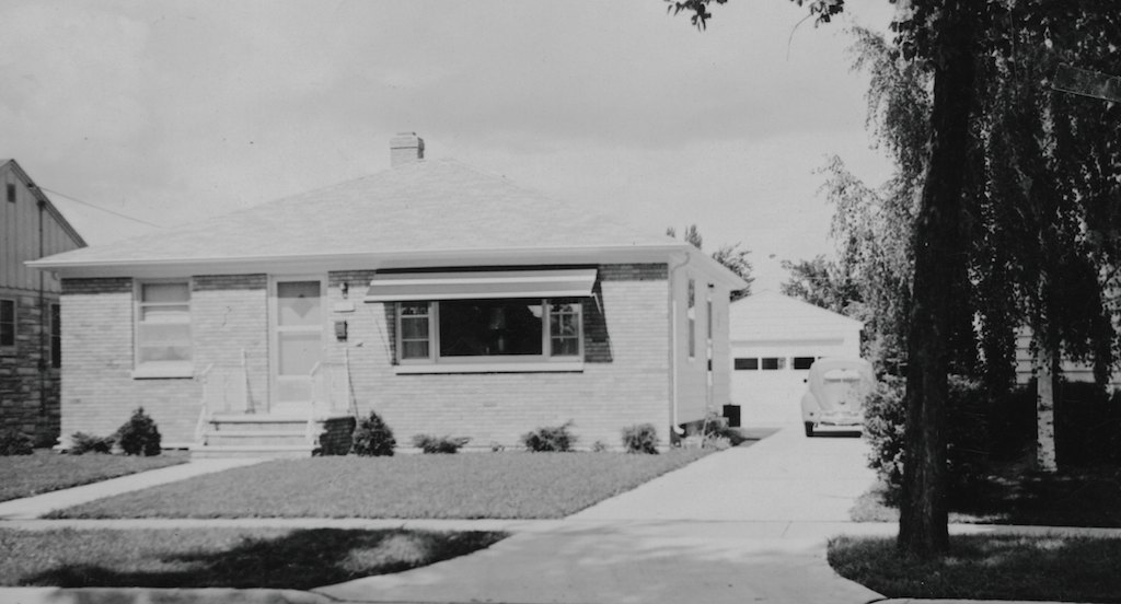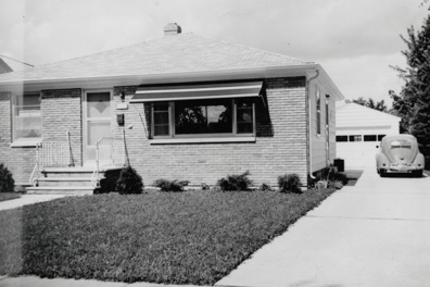 MIDDLE AND LOWER: Mother Krieser jotted down comments on the two lower photos. “Yellow brick front, white siding on sides and back” and “Bedrooms and bath on the west side, front bedroom the one we use. House faces south.” The photos were probably taken in 1955, the following spring, because the snow is obviously melting. Our VW (Volkswagen) “bug” is in the driveway in the middle photo. The house also had a full basement and garage. We had many a wonderful meal there with them. Mother Krieser was an exceptional cook and I worked most of the time we lived in Green Bay, so her meals were much appreciated. One thing I remember well was that she always had a dessert but I was always too full from her good meal to eat it, so I always said, “I’ll take mine home with me.” It was somewhat of a standing joke. Carl always ate his, but there was always another piece for him in the take-home, too.