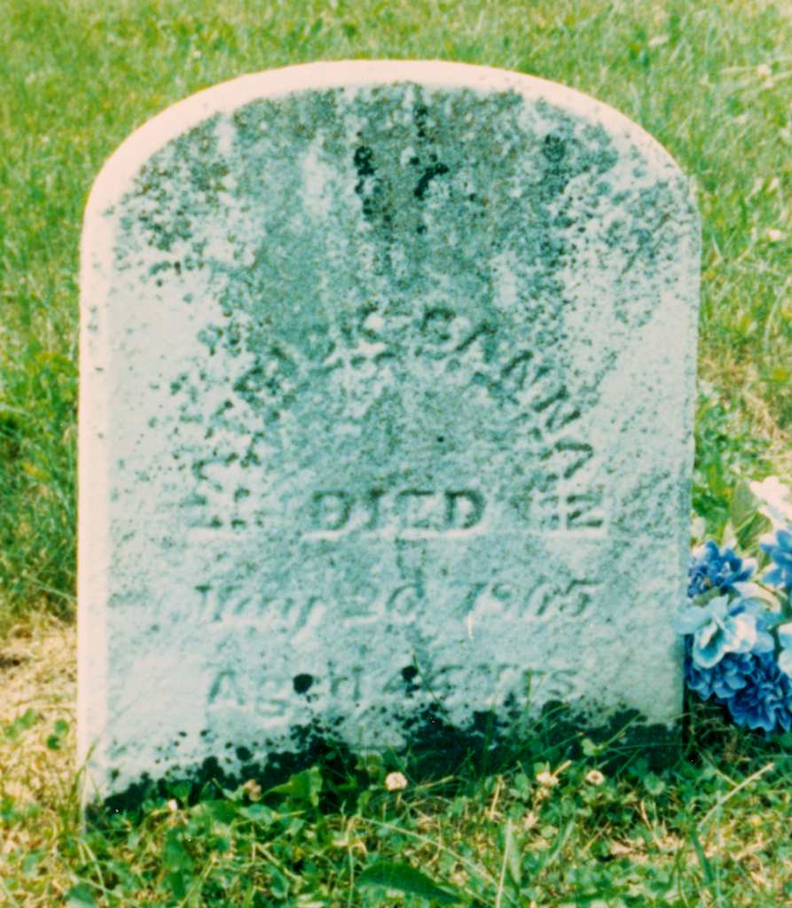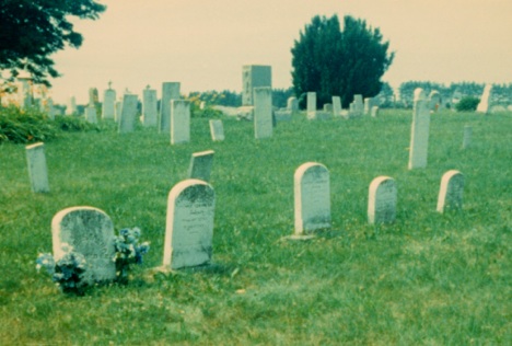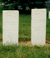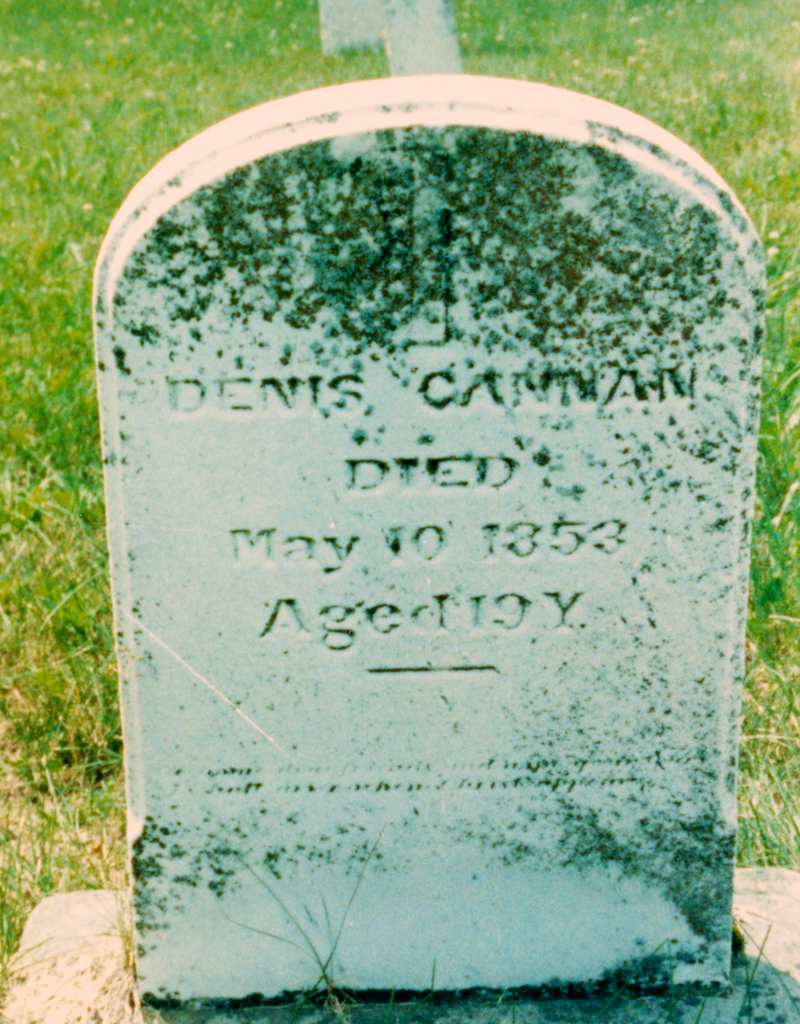 LEFT: The headstone of Patrick Cannon, son of James and Mary (Lyons) Cannon is in Summitville, Ohio with his brother and sister shown above. He died May 26, 1865, age 44 years. Many miles separate him from the graves of his family in Wisconsin. RIGHT: His sons, Dennis and James, are in St. Edward Cemetery, Mackville, Wisconsin. The stones read: Dennis, son of P & M Cannen, died Mar. 26, 1864, 3 yrs 8 mo; James, son of P & M Cannen, died Sep. 29, 1863, 5 yrs 6 mo 13 days. His widow, Mary (Murphy) Cannon and daughter, Bridget, are buried in St. Patrick’s Cemetery, Maple Grove, Manitowoc County, Wisconsin.