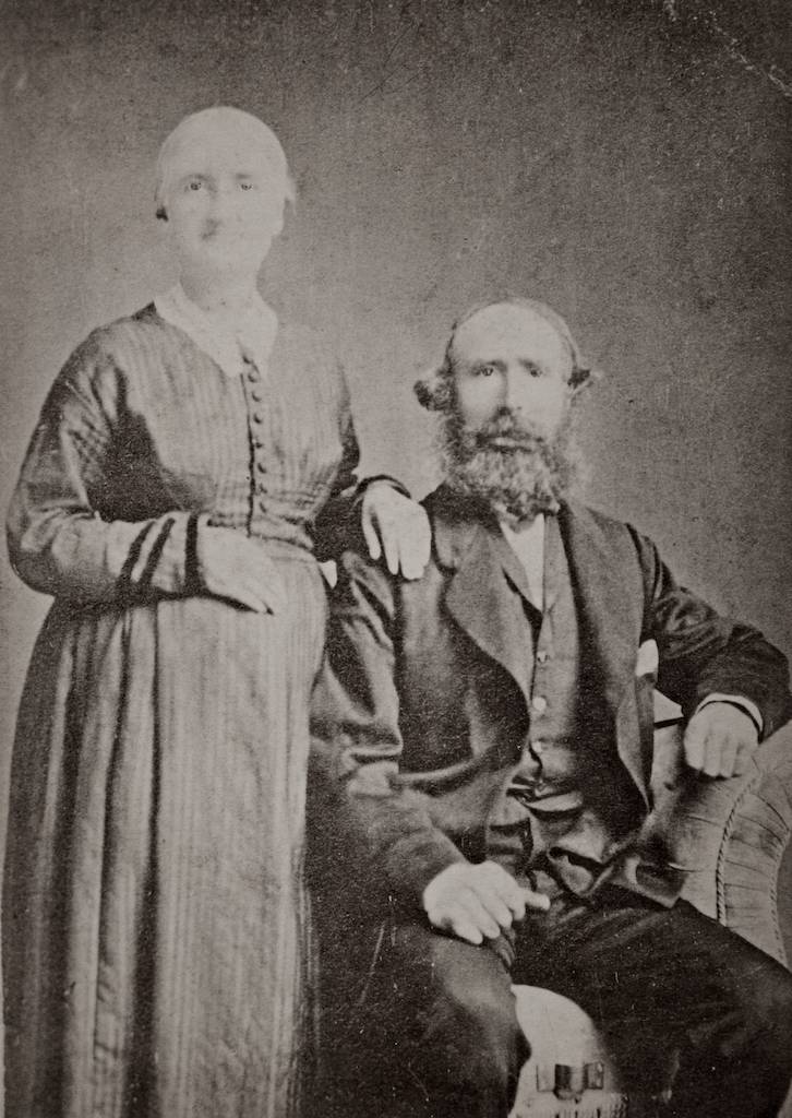 This picture, taken in Manitowoc, Wisconsin, belonged to Ellen (Cannon) Bley. She had told her daughter, Eliza, that they were her relatives but Eliza forgot their names and the relationship. The only Cannons living in that county during that early period of time was James A Cannon and his wife, Mary. After James died, his widow was found living with the widow of Patrick Cannon, who was the brother of Ellen (Cannon) Bley. This picture might be of James A. and Mary (Finegan) Cannon or Mary and her second husband, Dennis Shea, whom she married 25 June 1854. There are no records of James A Cannon after 1850. Her Second marriage record said she was the former Mary Finegan, widow of James Cannon. Further research might prove the Cannon relationships.