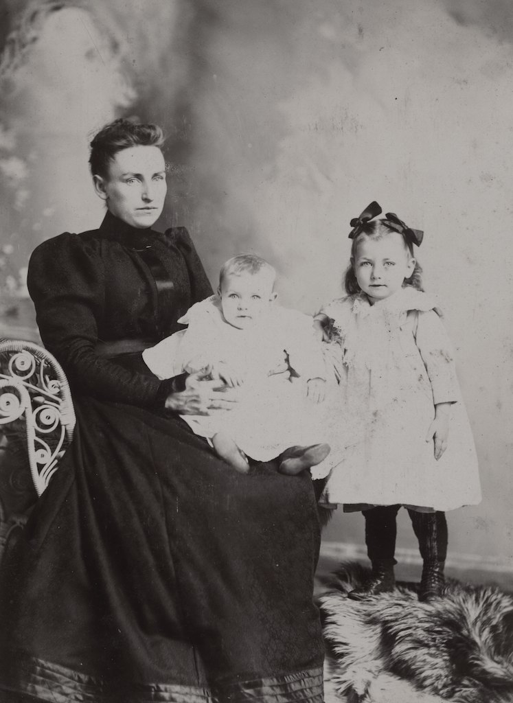 With her daughters, Margaret (on her lap) and Mae Krause (at her side).