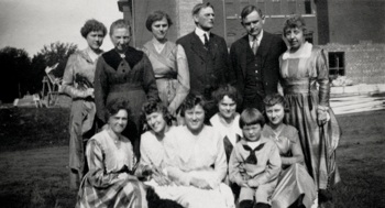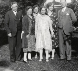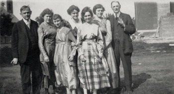 MIDDLE LEFT: Standing are Aud, Elizabeth holding her son Karl, Alma, Mother Bertha Ruth, Fred and Aud’s wife, Marie. Seated are Mayme, twins Myma and Mildred, Clara and Esther.