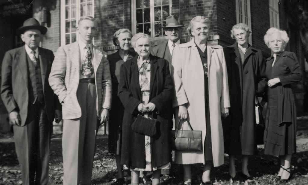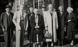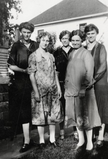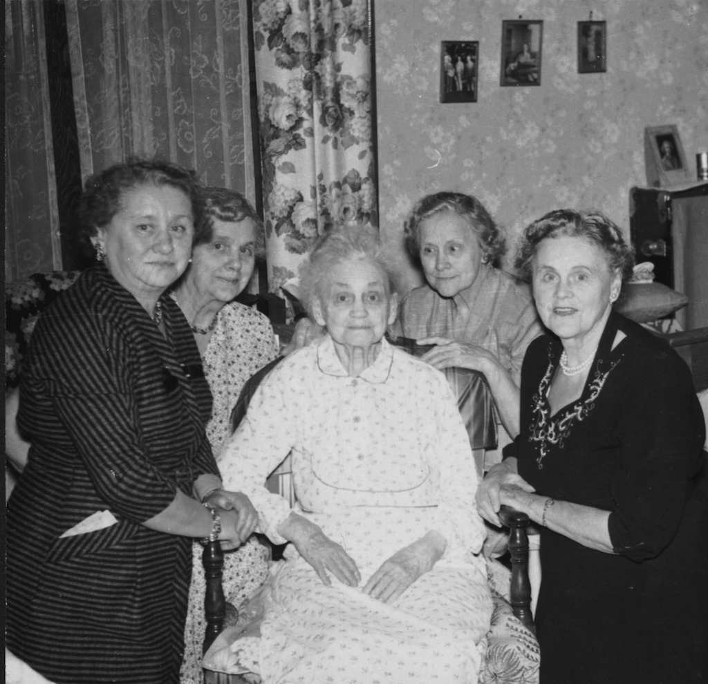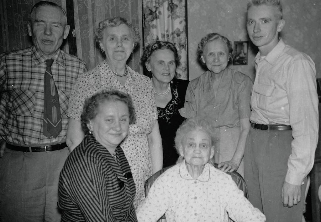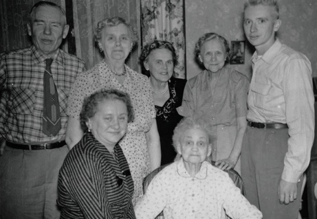 BOTTOM LEFT: Esther and Mayme sit in the front while Esther’s husband, Carl, stands next to Elizabeth, Clara, Alma and Esther’s son, Carl F. Krieser. This was the last time that the five sisters were all able to get together. Although Mayme was not in good health at this time, she lived for almost three more years. She died February 22, 1958.