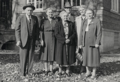 TOP: L. to R.: Adolph (Aud), Alma, Marie (Mayme) and Fred Ruth, with Elizabeth (Ruth) Feise and Esther (Ruth) Krieser at the right. Clara was not able to make this reunion and Fred died February 28th, 1953.