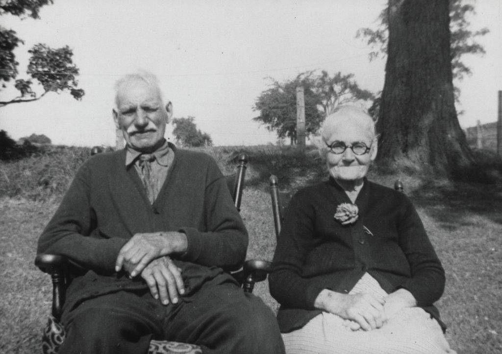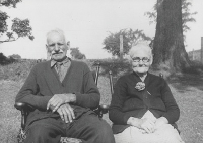 James W. Bley received his legacy of the Bley farmstead from his father, John Hugo Bley. He had worked with his father, farming and digging wells, all through the years and the farm naturally went to him after his father’s death. Jim and Mary Ann raised a large family together on this farm, seven children who lived and two who died in infancy. The infant mortality rate was still very high in that day. The oldest child, a girl, was one of these, born about 1890. Mary Loretta was born 14 June, 1892; Sarah Margaret was born 25 October, 1893; Anna Elizabeth was born 2 August, 1895; John Patrick (who later inherited the old farmhouse with his half of the farm) was born 23 April, 1900; Rose Cecelia was born 19 March, 1902; and Frances Virginia was born 7 December, 1903. The other infant child who died was probably born after the first girl or after John Patrick, judging from the way the birth years fall. This picture of Jim and Mary Ann in their golden years portrays a moment of placid serenity on the farm, a welcome relief from the hard work that farm life usually demands. Jim was a very jolly, fun-loving man who loved to tease and the camera catches his personality well. Mary Ann’s smile is as broad as her heart. Jim always spoke tenderly about his Mary Ann. What a loving, happy couple they were.