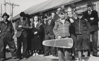 LEFT: This snapshot was dated 1938. Jim Bley’s daughter, Sarah Cotter Babino, was moving to California with her second husband, James Babino, and her family. “The old violin” seen in this picture became somewhat of a legend in Sarah’s family after its disappearance many years later, reminding them of the great love that the Irish have for the “fiddle and the jig”. That old violin probably lifted many a pioneer spirit through the various hardships they faced, as they danced their cares away after the day’s work was done. Shown left to right: Patrick McIlhone, George McIlhone, John Bley, Mary (Bley) McIlhone McGuire, Colette (McIlhone) Oskey, George Bley, Mary Ann (McKeever) Bley, Clifford Cotter, Sarah (Bley) Cotter Babino, John Elmer Cotter, George Edward Cotter holding the violin, James Babino (behind), Mildred (or Dorothy) Cotter, Frank Oskey (Colette’s husband), Joe Cotter and James W. Bley, patriarch of the family, is on the right. Sarah and her family remained in the Salinas, California area.