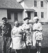 LEFT: A 1966 Bley Reunion. This picture was dated June, 1966. Two of the Bley girls, Rose and Frances, were visiting at the old Bley homestead where John P. Bley and his wife, Katherine, lived. Their parents had died long before this picture was taken. Mary Ann (McKeever) Bley had died in 1948 and her husband, Jim, followed her in 1950. Their oldest son, John P. Bley, inherited the half of the farm with the old Bley house, as seen in the background of this picture. Frances (Bley) Steenhoudt had moved to California and Rose (Bley) Robertson, lived in Milwaukee, Wisconsin. This must have been a happy reunion for the family - an opportunity for the two sisters not only to visit with each other, but to travel back to their home together and visit their family that still lived in Outagamie County. The old Bley home is the same home that was built by their grandfather, John Hugo Bley, in the pioneer days of the county. Seen left to right: John P. and Katherine Bley, Rose (Bley) Robertson and Frances (Bley) Steenhoudt.